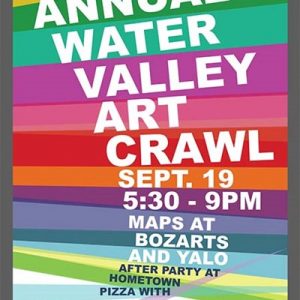 CRAWL AROUND WATER VALLEY The 7th Annual Art Crawl is only days away! September 19th, from 5:30 to 9 p.m. This event is free and family-friendly; please bring your children. There are 16 stops on the tour this year; seven are new to the Crawl, and all of them are comfortably within walking distance of…