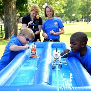 The Raingutter Regatta is equivalent to the Pinewood Derby, just less detailed. During the race, a scout will test their craft against another down a two-lane, water-filled inflatable track. See the video on our YouTube site.